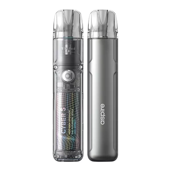 Das Cyber S Pod Kit von Aspire ist ein Pod-System im modernen, kompakten Stick-Format mit einem futuristischen Look, der durch seine elegante Gestaltung mit einer matt-glänzenden Zink-Legierung auf der Rückseite und einer transparenten Polycarbonat-Front, die den Blick auf das Innere des Kits freigibt, entsteht. Mit seiner Auswahl aus fünf tollen Farbvarianten ist das Cyber S Kit ein wahrer Blickfang. Es bietet ein herausragendes MTL- und RDL-Dampferlebnis bei höchster Benutzerfreundlichkeit.Das Cyber S Pod Kit von Aspire beeindruckt nicht nur durch sein futuristisches Design mit matt-glänzender Zinklegierung und klar-transparentem Polycarbonat, sondern auch durch seine technische Ausstattung. Mit einem leistungsstarken 700 mAh Inbuilt-Akku und 2 A Typ-C Fast-Charging bietet das Kit nicht nur lange Dampfsessions, sondern auch eine schnelle Ladezeit. Eine 360° Farb-LED um den ergonomischen Feuertaster sorgt nicht nur für einen stylischen Look, sondern informiert auch über den aktuellen Akkustand. Der moderne ASP Chip garantiert dabei nicht nur eine konstante Ausgangsleistung, sondern verfügt auch über umfangreiche Sicherheitsfeatures. Mit drei unterschiedlichen Aktivierungsmethoden kann man das Cyber S Kit ganz nach den eigenen Bedürfnissen nutzen, ohne komplizierte Einstellungen vornehmen zu müssen.