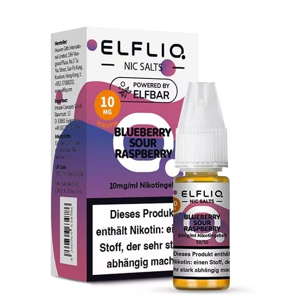- 1 x Elfbar Elfliq Blueberry Sour Raspberry Nikotinsalz Liquid 10 ml