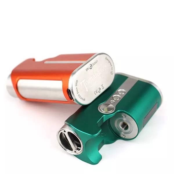 Der Tomahawk SBS Mod ist das beeindruckende Ergebnis der Zusammenarbeit zwischen BP Mods und Dovpo. Er zeichnet sich durch ein elegantes und aufwendiges Design sowie eine kompakte und ergonomische Formgebung aus. Gefertigt aus einer Aluminium-Legierung und Edelstahl, bietet der Mod eine komfortable Bedienung und kann Verdampfer mit bis zu 24,0 mm Durchmesser auf seinem 510er-Anschluss aufnehmen.
