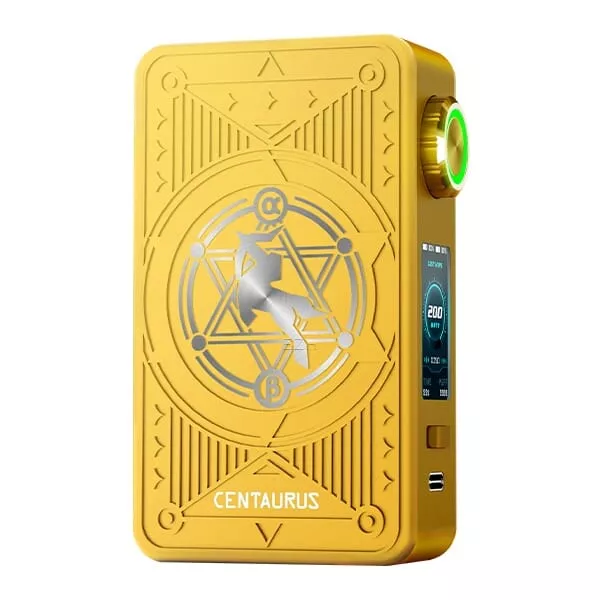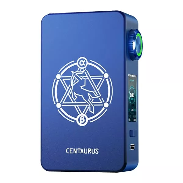 Mit dem Centaurus M200 Box Mod präsentiert Lost Vape einen imposanten Dual-Akku Mod in beeindruckender Optik und tollen Farbvarianten. Der magnetische Seitendeckel, der als Akkufachdeckel dient und auch ausgetauscht werden kann, ist je nach Variante mit verschiedenen Mustern sowie einem Pentagramm, dem stilisierten Centaur-Logo und dem "Centaurus"-Schriftzug aufwändig verziert. Die Front wird dominiert von dem großzügigen TFT-Farbdisplay sowie dem ergonomischen und multifunktionalen Feuerknopf, über den alle Einstellungen vorgenommen werden können. An seinem zentrierten und gefederten 510er Anschluss kann der Centaurus M200 problemlos Verdampfer bis zu einem Basisdurchmesser von 25 mm aufnehmen. Von Kopf bis Fuß ist der aus einer Zinklegierung und Edelstahl gefertigte Centaurus M200 Mod eine wirklich beeindruckende Erscheinung.Mit zwei 18650er Akkuzellen (nicht im Lieferumfang enthalten) hinter der magnetischen Seitenabdeckung bringt es der Centaurus M200 Box Mod auf eine Ausgangsleistung von bis zu 200 Watt. Dank des leistungsstarken Quest 2.0 Chips bietet der imposante Mod nicht nur absolute Spitzenleistung mit rasanter Feuergeschwindigkeit, sondern kann auch mit einer Fülle von verschiedenen Dampfmodi (VW, VV, Bypass, TC-SS, TC-Ni, TC-Ti, VPC/Curve) punkten, die auch die Wünsche anspruchsvoller Dampfer voll befriedigen sollten. Hinzu kommen verschiedene Preheat-Stufen (Soft, Normal, Hard) und umfangreiche Sicherheitsfunktionen sowie ein 10-Sekunden-Überhitzungsschutz. Das brillante 0,96-Zoll-TFT-Farbdisplay stellt alle relevanten Informationen übersichtlich dar und kann mit 5 verschiedenen Farbschemata aufwarten. Wer seine Akkus nicht extern laden möchte, freut sich über den USB Typ-C Anschluss mit einem Ladestrom von 5 V / 2 A, über den die Akkus auch intern schnell und sicher geladen werden können.