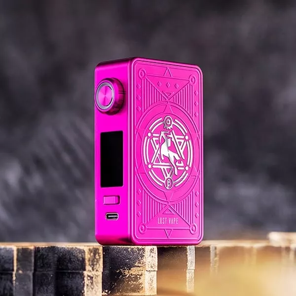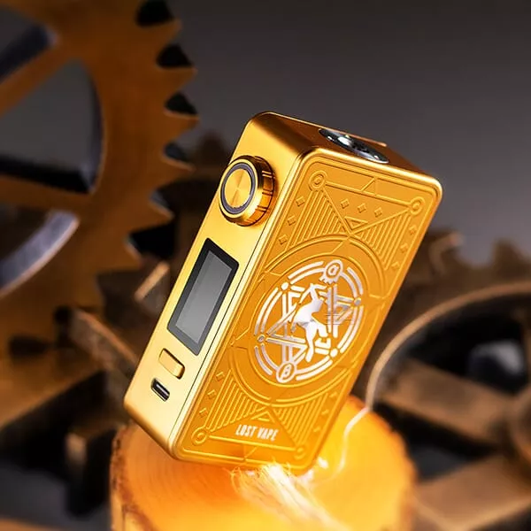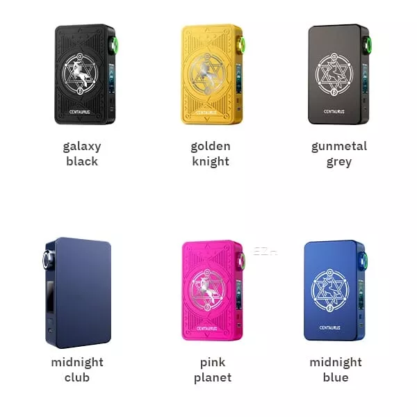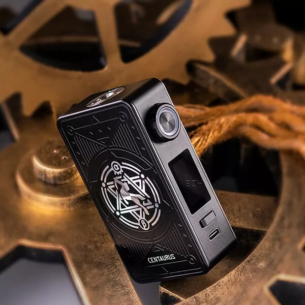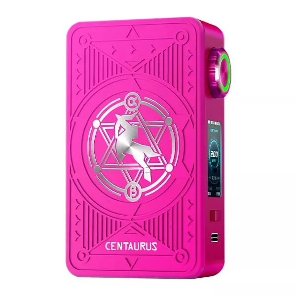Mit dem Centaurus M200 Box Mod präsentiert Lost Vape einen imposanten Dual-Akku Mod in beeindruckender Optik und tollen Farbvarianten. Der magnetische Seitendeckel, der als Akkufachdeckel dient und auch ausgetauscht werden kann, ist je nach Variante mit verschiedenen Mustern sowie einem Pentagramm, dem stilisierten Centaur-Logo und dem "Centaurus"-Schriftzug aufwändig verziert. Die Front wird dominiert von dem großzügigen TFT-Farbdisplay sowie dem ergonomischen und multifunktionalen Feuerknopf, über den alle Einstellungen vorgenommen werden können. An seinem zentrierten und gefederten 510er Anschluss kann der Centaurus M200 problemlos Verdampfer bis zu einem Basisdurchmesser von 25 mm aufnehmen. Von Kopf bis Fuß ist der aus einer Zinklegierung und Edelstahl gefertigte Centaurus M200 Mod eine wirklich beeindruckende Erscheinung.Mit zwei 18650er Akkuzellen (nicht im Lieferumfang enthalten) hinter der magnetischen Seitenabdeckung bringt es der Centaurus M200 Box Mod auf eine Ausgangsleistung von bis zu 200 Watt. Dank des leistungsstarken Quest 2.0 Chips bietet der imposante Mod nicht nur absolute Spitzenleistung mit rasanter Feuergeschwindigkeit, sondern kann auch mit einer Fülle von verschiedenen Dampfmodi (VW, VV, Bypass, TC-SS, TC-Ni, TC-Ti, VPC/Curve) punkten, die auch die Wünsche anspruchsvoller Dampfer voll befriedigen sollten. Hinzu kommen verschiedene Preheat-Stufen (Soft, Normal, Hard) und umfangreiche Sicherheitsfunktionen sowie ein 10-Sekunden-Überhitzungsschutz. Das brillante 0,96-Zoll-TFT-Farbdisplay stellt alle relevanten Informationen übersichtlich dar und kann mit 5 verschiedenen Farbschemata aufwarten. Wer seine Akkus nicht extern laden möchte, freut sich über den USB Typ-C Anschluss mit einem Ladestrom von 5 V / 2 A, über den die Akkus auch intern schnell und sicher geladen werden können.
