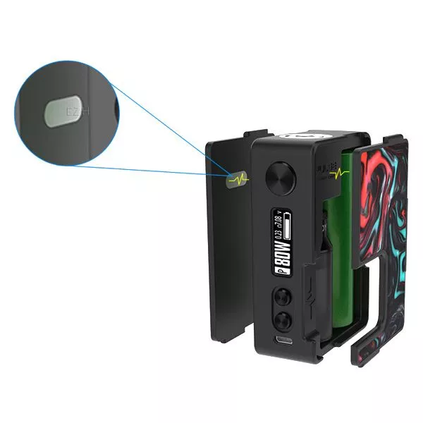 Der Vandy Vape BF 80W Box Mod Akkuträger ist ein regulierbarer 80 Watt Sqounker Mod, welcher über 1 x 20700 oder 1 x 18650 Akkuzelle (nicht im Lieferumfang enthalten) betrieben wird und eine Ausgangsleistung von 5 bis 80 Watt ausgelegt ist. Durch ihren Chipsatz verfügt der Mod über alle nötigen Sicherheitsfunktionen, wie z. B. Verpolungsschutz und Überhitzungsschutz. Mittels eines Deckels lässt sich die 8 ml große Squonker Flasche zum Befüllen leicht und schnell aus dem Mod entnehmen.Technische Daten