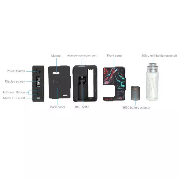 - Leichtes Befüllen der 8 ml großen Squonker Flasche für kontinuierlichen Gebrauch