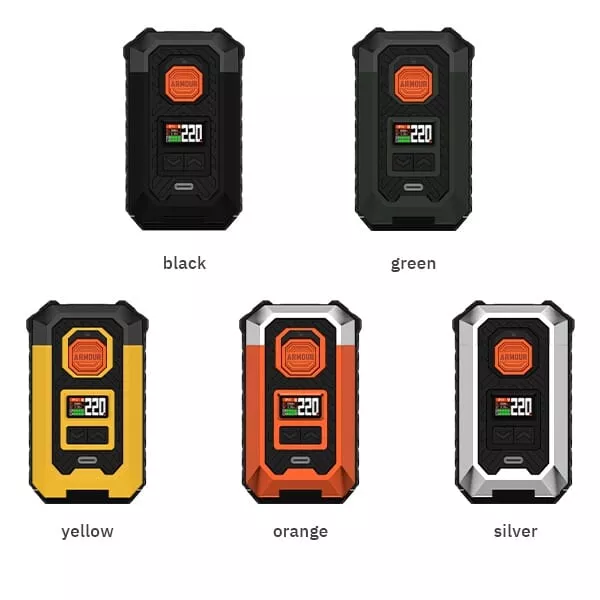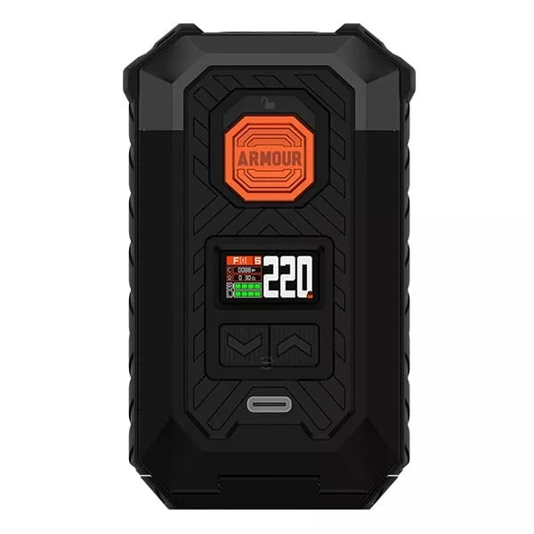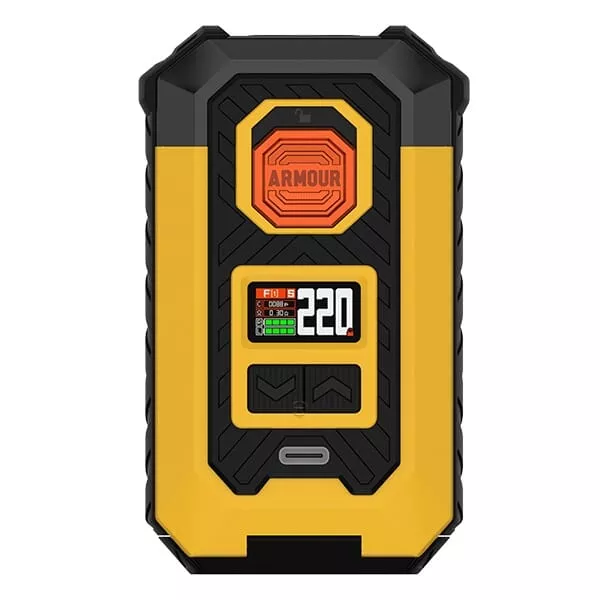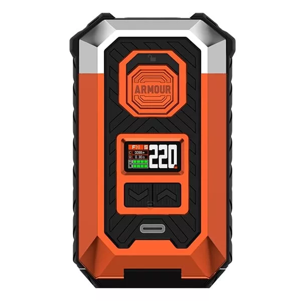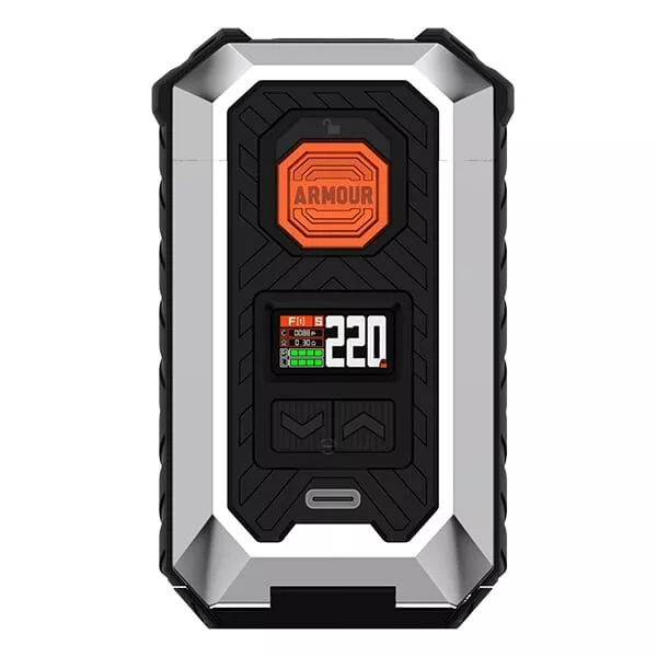 Der leistungsstarke Armour Max Mod wird wahlweise mit zwei 21700er oder 18650er Akkuzellen betrieben, die allerdings separat erworben werden müssen. Diese liefern genug Energie für eine maximale Ausgangsleistung von bis zu 220 Watt. Die Akkuzellen werden bequem von unten in das Akkufach eingelegt, das durch eine gefederte Abdeckung sicher verschlossen wird. Mit einem speziellen Knopf lässt sich das Fach für den Batteriewechsel mühelos öffnen. Die Navigation durch die Einstellungen erfolgt über einen griffigen Feuerbutton mit integrierter Lock-Switch Funktion und zwei Auswahltasten unterhalb des lebendigen 0.96 Zoll TFT-Farbdisplays, das alle wichtigen Informationen übersichtlich und in hoher Qualität präsentiert.Intelligente Betriebsmodi und Sicherheitsfeatures