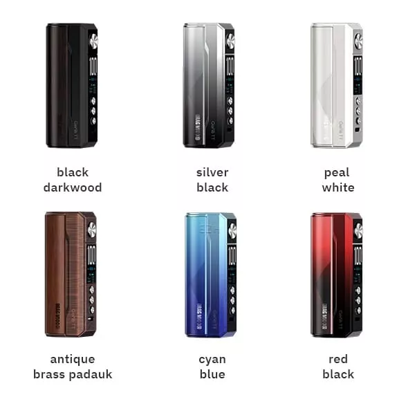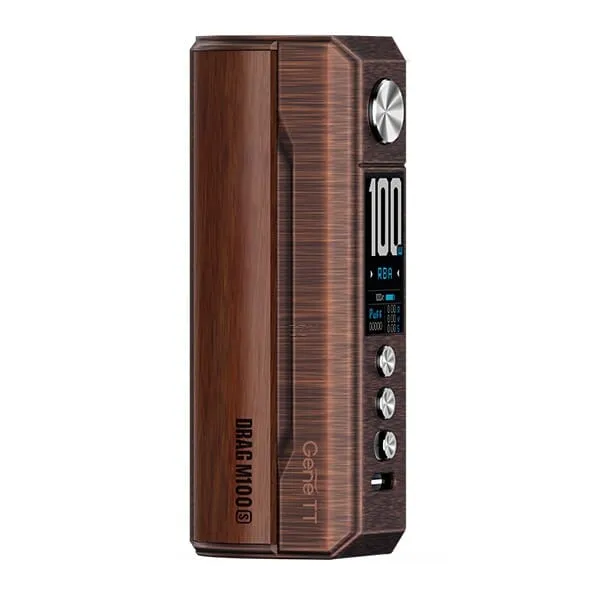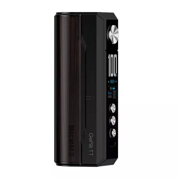 Der Drag M100S Mod von VooPoo ist eine stilvolle und leistungsstarke Ergänzung zur legendären Drag-Serie. Das Chassis besteht aus einer robusten Zink-Legierung und weiteren hochwertigen Komponenten, je nach Ausführung in Darkwood, Padauk oder AG, und ist mit einer aufwendigen Lackierung versehen. Mit seiner ergonomischen Formgebung liegt der M100S Mod angenehm in der Hand und bietet eine einfache Bedienung. Verdampfer bis zu 25,5mm können ohne Überhang auf dem gefederten 510er Anschluss platziert werden. Der M100S Mod ist in sechs verschiedenen Varianten erhältlich, die alle bewundernde Blicke auf sich ziehen.Leistung und Funktionalität des M100S Mods