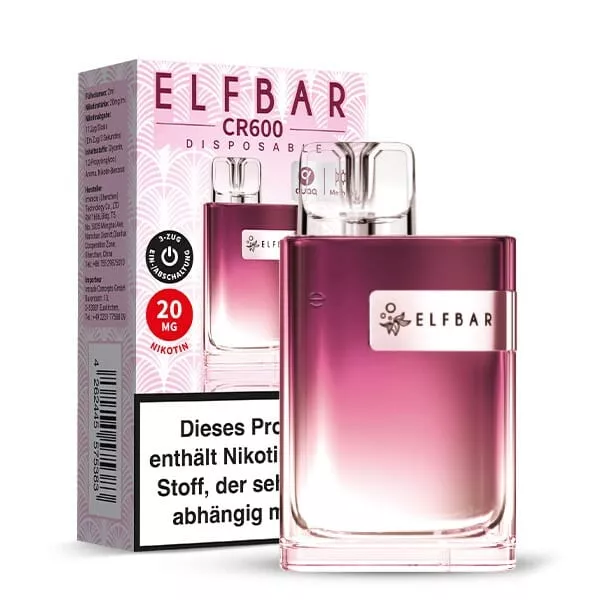 - 1x Elfbar CR600 Einweg E-Zigarette 20mg/ml in gewählter Geschmacksrichtung