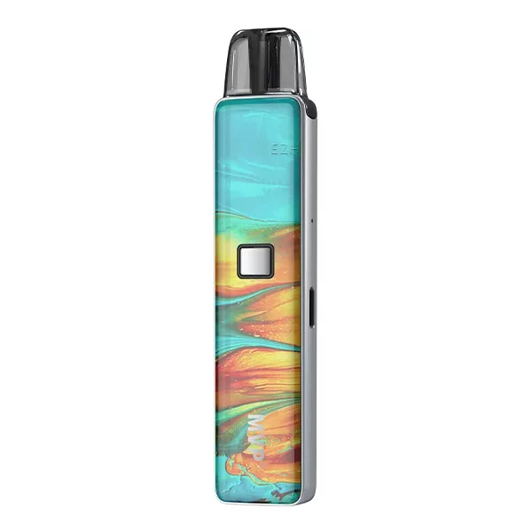 Mit einer Größe von 107.9 x 22.7x 13.4 mm und einem Gesamtgewicht von nur knapp 50 Gramm liegt Innokin‘s kompaktes MVP Kit ergonomisch und leicht in der Hand und ist der ideale Alltagsbegleiter für alle, die ein klassisches MTL Zugverhalten bevorzugen. Hierbei überzeugt das, aus einer Zink-Legierung und PCTG gefertigte, Kit nicht nur durch seine schicke Optik und eine tolle Haptik, sondern vor allem durch seine einfache Bedienung und ein intensives Dampf- und Geschmackserlebnis. Insgesamt stehen dem Dampfer 6 tolle Farbvarianten mit einer faszinierend-schillernden und griffig texturierten Oberfläche zur Auswahl.Der integrierte 500 mAh Akku lässt sich über den USB Typ-C Anschluss zügig wieder aufladen und verleiht dem kompakten Kit eine sehr gute Ausdauer mit zwei unterschiedlichen Leistungsstufen von 11 oder 12.5 W. Diese lassen sich durch 2-Klick des viereckig geformten Feuertasters bequem auswählen und werden durch eine Farb-LED um den Feuerbutton herum auch farblich angezeigt (Grün & Rot). Die Farb-LED informiert zugleich auch über den aktuellen Akkustand des MVP Kits. Zur Aktivierung des Kits kann entweder klassisch der Feuerbutton genutzt werden, oder man überlässt der ebenfalls integrierten Zugautomatik diese Aufgabe. Durch die Konzentration auf das Wesentliche ermöglicht das Kit eine einfache Bedienung und der Dampfer kann sich voll und ganz dem Genuss widmen.