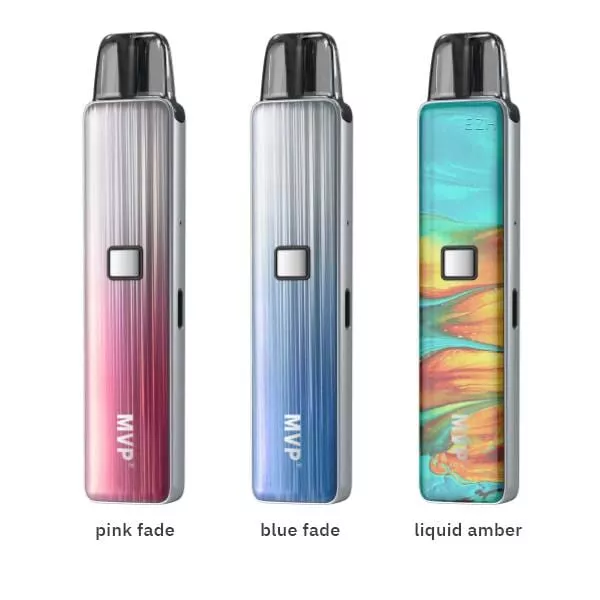 Die MVP Pods besitzen fest integrierte und nicht ersetzbare 0.65 Ohm KAL Coils, die einen intensiven Geschmack und dichten Dampf liefern. Mit einem Fassungsvermögen von 2.7 ml bietet der transparente Pod ein sehr gutes Tankvolumen und ein praktisches Side-Fill unter einer Silikonabdichtung ermöglicht eine schnelle und saubere Befüllung. Über zwei gegenüberliegende Bohrungen am MVP Stick wird ein angenehmer und leiser MTL/Backenzug ermöglicht, der dem Zug an einer Tabakzigarette sehr ähnlich ist. Das ergonomische Mundstück im Entenschnabel-Design liegt angenehm an den Lippen an und ist optimal auf dieses Zugverhalten hin abgestimmt. Zudem kann der aktuelle Liquidstand einfach durch das Mundstück hindurch betrachtet werden. Der Pod wird von starken Magneten auf dem Akkustick fixiert und am Ende der Coil-Lebensdauer einfach durch einen neuen Pod ersetzt.