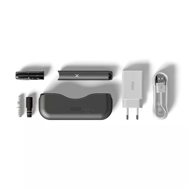 Die Ladestation des Kiwi Kits, ausgestattet mit einem 1450 mAh Akku, ermöglicht das Aufladen des Vape-Pens unabhängig von einer Stromquelle. Der Kiwi Stick wird magnetisch in der Ladeschale gehalten und über LEDs werden der Akkustand der Station sowie des Vape-Pens angezeigt. Die Ladestation kann auch als Powerbank für andere Geräte dienen.Pods und Dampferlebnis