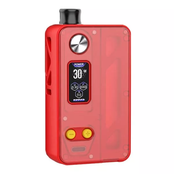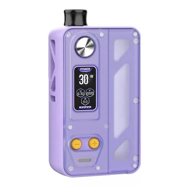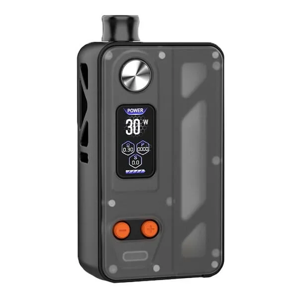 Der Manto AIO Pro Mod wird von einer 18650er Akkuzelle (nicht enthalten) betrieben, die durch die stylischen Cut-Outs am Mod sichtbar ist und in Verbindung mit dem transparenten, gefrosteten Kunststoff-Cover für ein ansprechendes Design sorgt. Der Mod erreicht eine Ausgangsleistung von bis zu 80 Watt und kann über den USB Typ-C Anschluss schnell mit bis zu 1A Ladestrom aufgeladen werden. Der moderne Chipsatz bietet eine rasante Feuergeschwindigkeit und umfangreiche Sicherheitsfeatures. Zu den Modi gehören ein VW/Power Modus mit automatischem Best Wattage Preset, ein RBA Modus zur freien Leistungswahl und ein TC Modus für Ni, SS und Ti. Die Bedienung erfolgt über einen ergonomisch runden Feuerbutton sowie die farblich abgesetzten +/- Buttons. Das 0.96 Zoll TFT Farbdisplay informiert übersichtlich über den Akkustand und die wichtigsten Parameter und bietet 7 verschiedene Farbschemen zur Auswahl.Innovativer Tank und einfache Handhabung