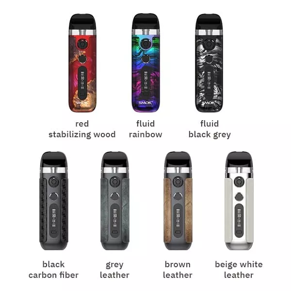 Das Novo 5 Pod Kit besticht durch sein modernes und ergonomisches Design in 14 unterschiedlichen Farbvarianten, mit und ohne seitliche Soft-Leder Applikationen. Die angenehme Oberflächenbeschaffenheit sorgt für ein komfortables Handling.Leistung und Bedienung