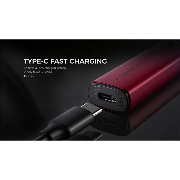 Nie wieder lange Ladezeiten! Das Caliburn A2 Pod Kit wird über den integrierten USB Typ-C Anschluss schnell und effizient aufgeladen. Der 520 mAh Akku ist in kurzer Zeit wieder voll und du kannst zügig weiter dampfen. Die Farb-LED zeigt dir immer den aktuellen Akkustand an, sodass du rechtzeitig nachladen kannst.Kompakt und stilvoll