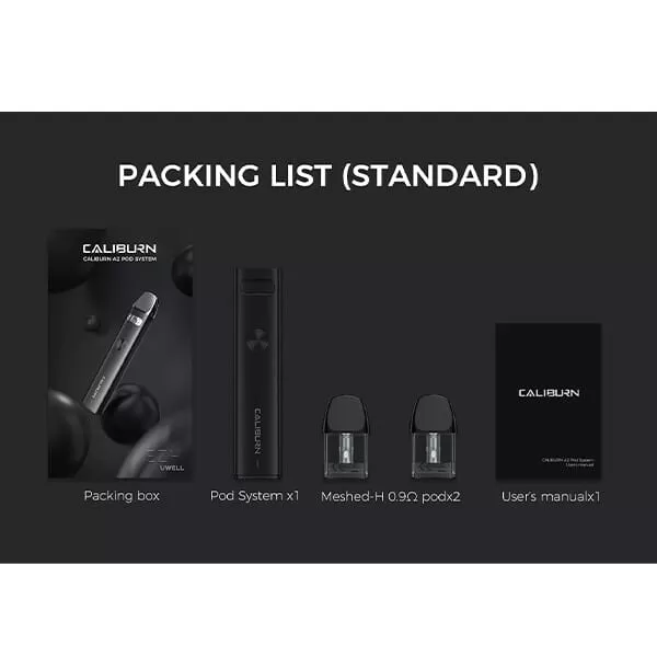 Im Lieferumfang des Uwell Caliburn A2 Pod Kits enthalten sind der Uwell Caliburn A2 Pod Mod Akkuträger, ein vorinstallierter Uwell UN2 Meshed-H 0.9 Ohm Caliburn A2 Pod, ein Ersatz-Pod und eine Bedienungsanleitung. Damit hat der Dampfer alles, was er für den Einstieg benötigt.Produktsicherheit