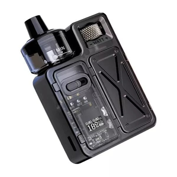 Das Crown M Pod Kit von Uwell gehört zur königlichen Crown Familie und ist mit einer Größe von 82,3 x 52,6 x 26,8 mm und einem Gewicht von 73,6 g äußerst kompakt und leicht. Sein futuristisches Design mit transparenten Elementen gibt Einblick auf den im Inneren befindlichen Chipsatz und das Board. Die robuste Außenhaut aus Polycarbonat ist ergonomisch geformt und liegt angenehm in der Hand. Die trendigen Farben verleihen dem Kit einen ansprechenden Look. Neben einer einfachen Bedienung bietet das Kit innovative Features und ist auf ein großartiges RDL Dampferlebnis ausgelegt.Das Crown M Pod-Mod wird einfach über den gut platzierten Feuertaster und ein griffig gerändeltes Scroll-Wheel bedient, das es ermöglicht, die Leistung einzustellen und den entsprechenden Modus auszuwählen (siehe letzter Abschnitt), wenn die neue Twin-Coil verwendet wird. Das futuristische Kit kann im klassischen VW/Power-Modus bis zu 35 Watt erreichen und der integrierte 1000 mAh Akku sorgt für eine tolle Ausdauer und kann dank des schnellen 2A Fast-Charging über den USB Typ-C Anschluss schnell aufgeladen werden. Auf dem 0,42-Zoll-OLED-Monochrom-Display werden alle relevanten Informationen übersichtlich dargestellt und über einen seitlich angebrachten Schieberegler (Slider) kann die Airflow individuell angepasst werden, um ein großartiges RDL Dampferlebnis zu ermöglichen.