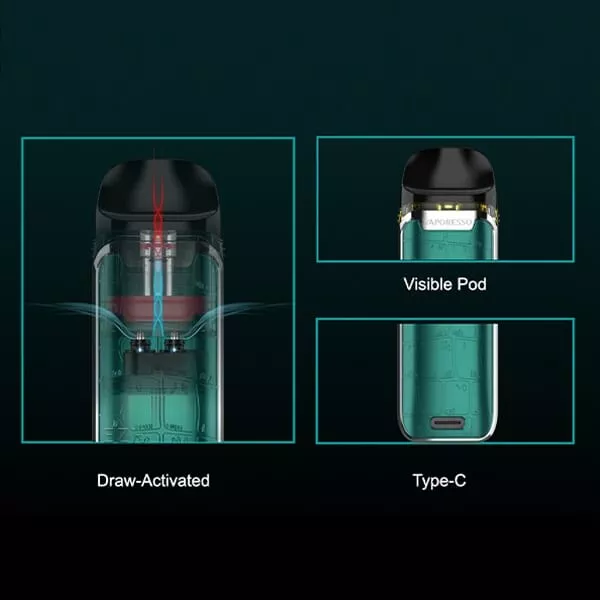 Mit dem kompakten und designstarken Luxe Q Pod Kit hat sich Vaporesso auf das Wesentliche konzentriert und wird damit Dampfeinsteiger und Minimalisten voll begeistern. Das schicke Kit mit seiner griffigen und schmutzabweisenden Soft-Leder-Oberflächenstruktur kommt ohne Feuerknopf und Einstellungen aus, denn das 1000 mAh starke Kit hat eine integrierte Zugautomatik und arbeitet vollautomatisch im Bypass-Modus.Die geschmackvollen 0,8- und 1,2-Ohm-Mesh-Pods haben ein Tankvolumen von 2,0 ml und verfügen über eine praktische Top-Fill-Funktion sowie feste und nicht austauschbare Verdampferköpfe. Der Benutzer hat 2 Airflow-Optionen für RDL und MTL, die durch einfaches Drehen der Pods um 180 Grad ausgewählt werden können. Das Mundstück im Duckbill-Design ist äußerst ergonomisch und die Pods sind dank Vaporessos "SSS Leak-Resistant Technology" gegen Auslaufen geschützt.