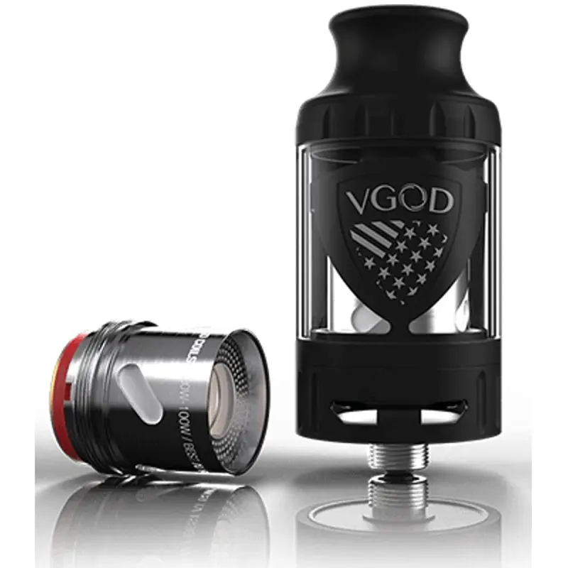 Das Design des kompakten Verdampfers ist typisch für die Edelschmiede und weist ein mächtiges Erscheinungsbild auf, die großen VGOD Shields verpassen dem Verdampfer den letzten optischen Schliff.