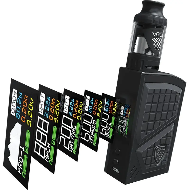 Lang ersehnt stellt VGOD nun endlich das Pro 200 Kit vor. Bestehend aus dem Pro 200 Box Mod und dem Pro SubTank Verdampfer liefert das Kit 4ml Füllvolumen, 200 Watt Ausgangsleistung und unglaubliche Performance.Der Pro 200 Mod weist ein edles und komfortables Design auf, gefertigt aus einer Zinklegierung und mit gummierten Seitenpanels versehen liegt der Mod perfekt in der Hand und das Handling ist extrem angenehm.