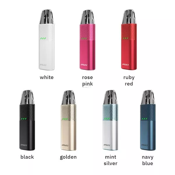 Im Lieferumfang des Argus Z Kits enthalten sind: 1 x VooPoo Argus Z Pod Mod Akkuträger, 1 x VooPoo Argus Ersatz-Pod 0.7 Ohm, 1 x USB Typ-C Ladekabel und 1 x Bedienungsanleitung.8. Welche Farbvarianten sind für das Argus Z Kit erhältlich?