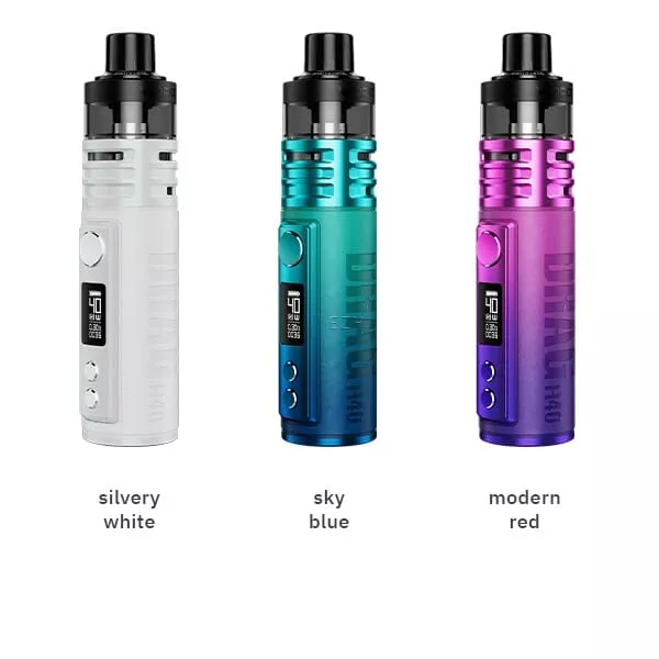 Das Drag H40 Kit verfügt über eine maximale Ausgangsleistung von 40 Watt, einen Widerstandsbereich von 0.1 bis 3.0 Ohm, einen integrierten 1500 mAh Akku und kann über USB Typ-C mit 5V / 1.5A schnell geladen werden. Zudem bietet es einen brillanten 0.54 Zoll OLED Display und umfangreiche Schutzschaltungen.5. In welchen Farbvarianten ist das VooPoo Drag H40 Kit erhältlich?