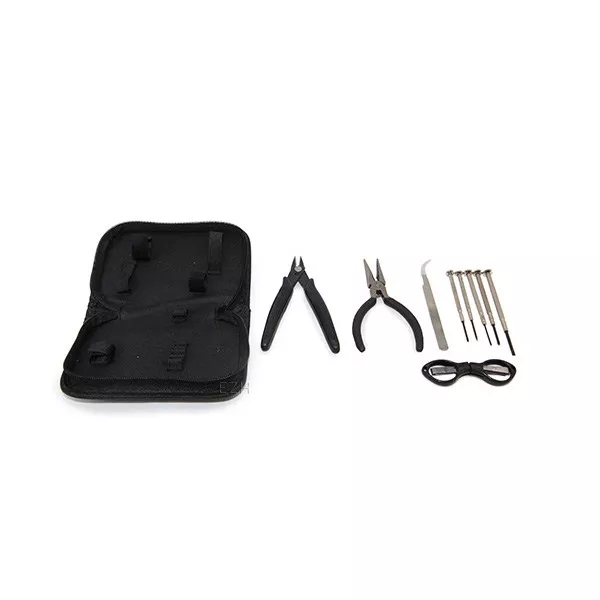 Das GeekVape DIY Mini Toolkit ist ein praktisches Set für Selbstwickler, das verschiedene Werkzeuge für das Bauen und Warten von E-Zigaretten-Coils enthält. Im Set sind mehrere Schraubendreher, eine Schere, eine Edelstahl-Pinzette, eine Kneifzange und ein Seitenschneider enthalten. Diese Werkzeuge sind in einem kompakten Etui verpackt, was sie ideal für unterwegs macht.Lieferumfang