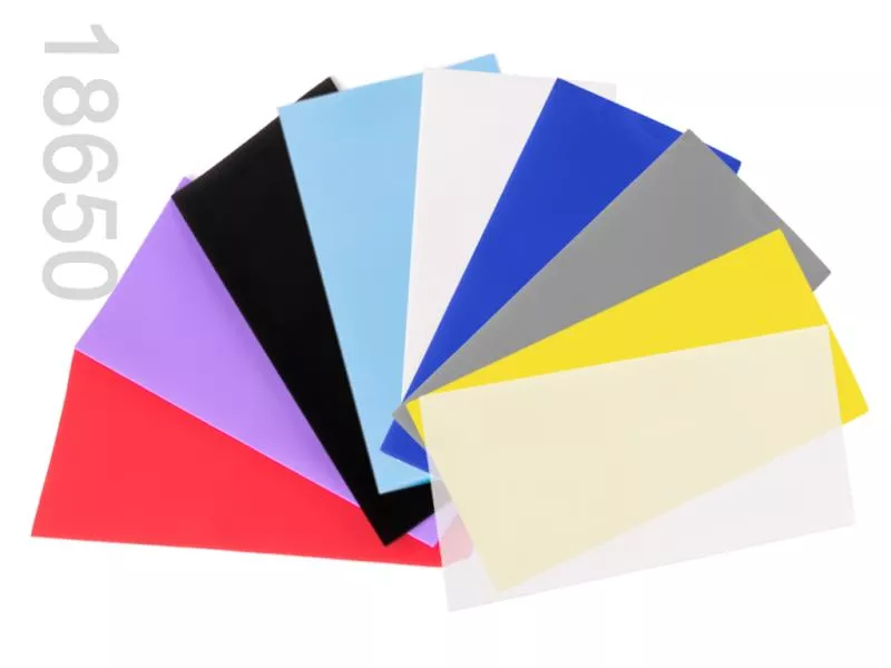 Schrumpfschlauch in verschiedenen Farben passend zugeschnitten auf 70mm für 18650 Zellen.