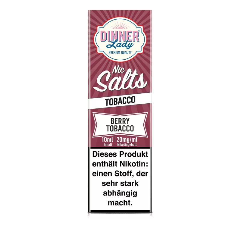 Entdecken Sie das "Berry Tobacco" Liquid von Dinner Lady, eine einzigartige Mischung aus rauchigem Tabak und dem süßen Geschmack reifer, cremiger Beeren. Dieses Liquid hat ein ausgewogenes Verhältnis von 50% VG und 50% PG. Es ist ideal für Dampfer, die ein reichhaltiges und komplexes Geschmackserlebnis suchen.Nikotinsalz Liquids