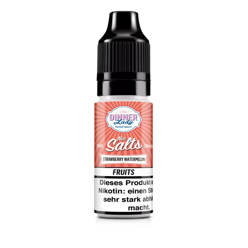 Das Liquid "Strawberry Watermelon" von Dinner Lady bietet eine harmonische Mischung aus dem süßen Geschmack von Erdbeeren und der erfrischenden Note von Wassermelonen. Verpackt in einer 10ml Flasche, ist dieses Liquid perfekt für Fans von fruchtigen Aromen.Nikotinsalz Liquids