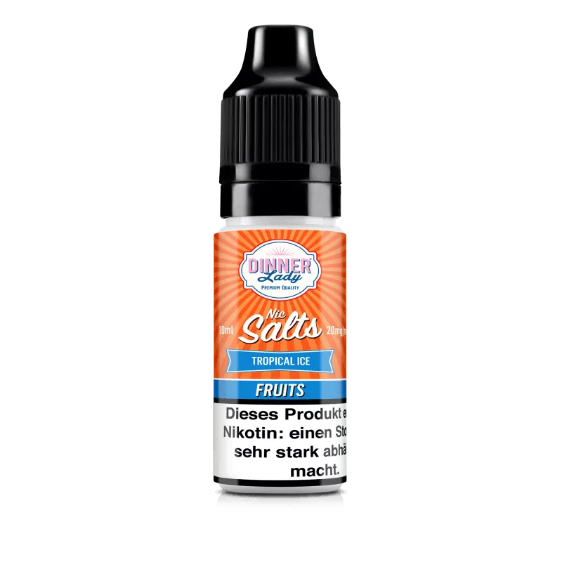 "Tropical Ice" von Dinner Lady vereint die spritzigen Noten von Limette und Zitrone mit dem saftigen Geschmack von Orangen, abgerundet mit einem ausgeprägten eisigen Hauch im Abgang. Dieses Salt-Nicotine E-Liquid bietet ein angenehmes, glattes Dampferlebnis, auch bei höheren Stärken, dank der Salt-Nicotine-Formulierung. Das 50/50 VG/PG-Verhältnis ist ideal für MTL (Mund-zu-Lunge) Vape-Kits und Tanks, und erzeugt eine geringe Dampfmenge, die das Gefühl einer Zigarette nachahmt.Nikotinsalz Liquids