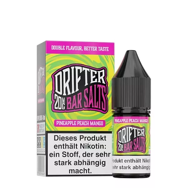 Wer auf der Suche nach einem intensiven Geschmackserlebnis ist, wird jetzt fündig! Mit den Drifter Bar Salts bringt die britische Liquid-Schmiede Juice Sauze den intensiven Geschmack der Disposable Vapes in Form von hochwertigen Nikotinsalz-Liquids nun auch in die normale E-Zigarette. Optimiert für die Nutzung in Pod-Systemen, begeistern die overdosed Liquids der Drifter Bar Salts Reihe mit ihrem intensiven Geschmack, wie man ihn sonst nur von bekannten Einweg E-Zigaretten her kennt. In England zählen die Liquids daher bereits zu den beliebtesten und erfolgreichsten Nikotinsalz-Liquids überhaupt.Wenn sich eine tropische Ananas, saftige Pfirsiche und aromatische Mangos zusammentun, entsteht ein ganz besonderes Geschmackserlebnis. Dieses geschmacksstarke Nikotinsalz-Liquid gibt den Geschmack der drei Exoten so authentisch und intensiv wieder, dass man glaubt, den tropischen Fruchtcocktail direkt am weißen Sandstrand zu genießen. Der perfekte Mix aus erfrischend saftigen und verführerisch süßen Noten macht diesen tropischen Fruchtmix unwiderstehlich und entführt dich geschmacklich in ferne Gefilde. Schmeckt wie ein Südsee-Urlaub!