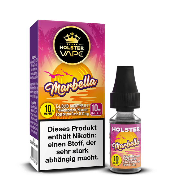- 1x Holster Marbella Nikotinsalz-Liquid 10ml