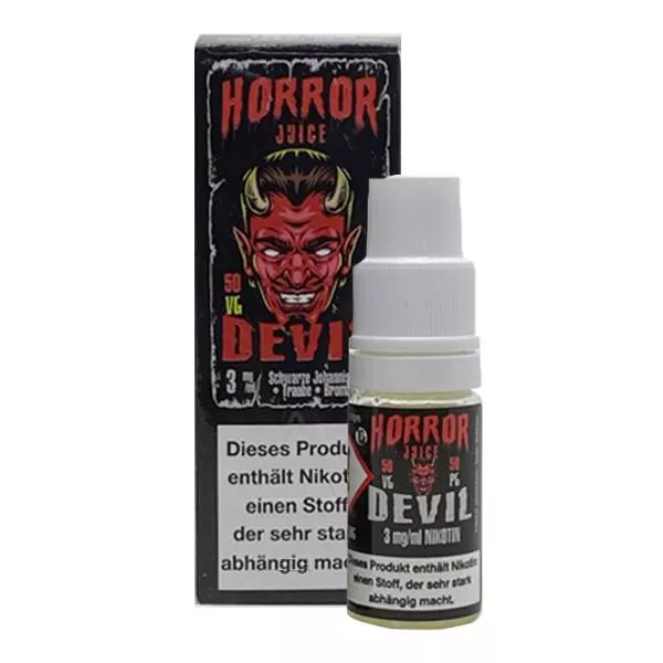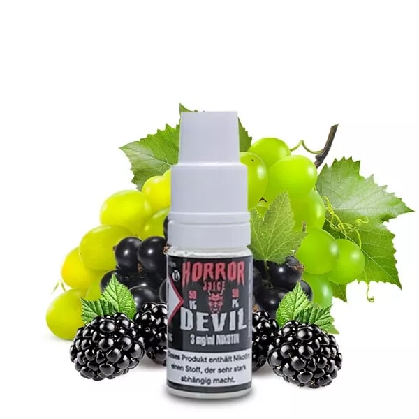 Das Devil Liquid von Horror Juice bietet ein teuflisch gutes Geschmackserlebnis mit schwarzen Johannisbeeren, aromatischen Brombeeren und saftigen Trauben. Die süß-säuerlichen Noten der Johannisbeeren, das charakteristische Aroma der Brombeeren und die süßen Weintrauben mit dezent herben Noten der Kerne ergeben eine höllisch gute Kombination für den Dampfgenuss.10ml Fertig-Liquids