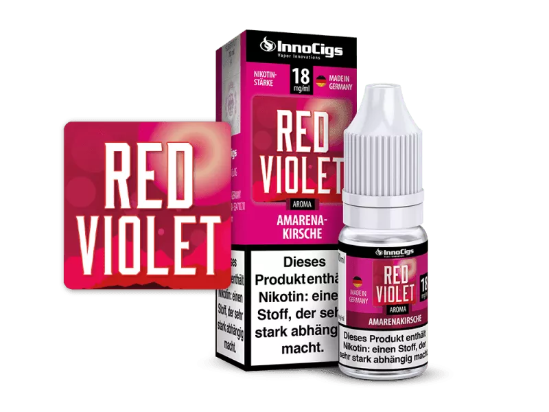 Das von InnoCigs hergestellte Liquid Red Violet können Sie in verschiedenen Nikotinkonzentration erwerben. Eine Nikotinfreie Variante steht Ihnen selbstverständliche auch zur Verfügung. Das Red Violet Liquid können Sie sofort in das Tanksystem Ihrer favorisierten E-Zigarette geben. Das in Deutschland hergestellte Liquid entfaltet beim Dampfen den Geschmack von Amarenakirsche; bzw. handelt es sich um eine Mischung aus dunklen Früchten und Mandellikör.