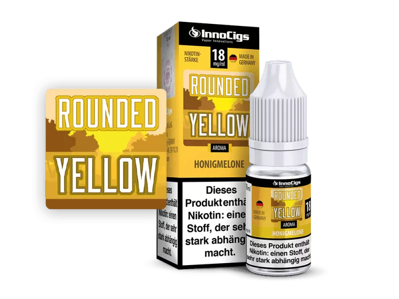 Das Rounded Yellow Liquid schmeckt verdampft nach Honigmelonen. Das InnoCigs Liquid wird in Deutschland hergestellt und erweitert das Portfolio der Hamburger Marke für E-Zigaretten und Zubehör um die für das Dampfen notwendigen Aroma-Flüssigkeiten. Jede Flasche enthält 10ml Liquid in Ihrer gewählten Stärke.Inhaltsstoffe für die Stärke: 0mg/ml