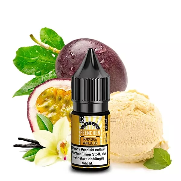"Maracuja Vanilleeis Feenchen" ist ein exotisches und erfrischendes Liquid, das die Aromen reifer Maracuja mit cremig-süßem Vanilleeis vereint. Die saftige Maracuja verführt mit ihren lieblich süßen und belebend säuerlichen Noten, die Ihre Geschmacksknospen zum Leben erwecken. Ergänzt wird das tropische Fruchterlebnis durch eine Kugel sahnig-cremiges Vanilleeis, das für zusätzliche Erfrischung sorgt und gleichzeitig mit seinem charakteristisch süßen und aromatischen Vanillegeschmack verzaubert. "Maracuja Vanilleeis Feenchen" von Nebelfee ist eine einzigartige Liquidkreation, die ein herrlich cremiges Dampferlebnis bietet. Genießen Sie diese köstliche Kombination aus kühlem Vanilleeis und exotischer Maracuja rund um die Uhr und lassen Sie sich von jedem Zug verführen.Nikotinsalz Liquids