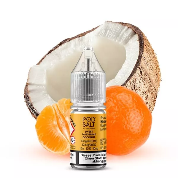 Entfliehen Sie mit jedem Zug Ihrer E-Zigarette in tropische Gefilde mit diesem exotischen Liquid von Pod Salt. Dieses Geschmackserlebnis kombiniert die reiche und volle Süße von reifen, nussigen Kokosnüssen mit ihrer dezenten Cremigkeit mit den saftigen und sommerlichen Süßnoten sonnengereifter Mandarinen. Die Mandarinen bringen auch ihre dezent säuerlichen Nuancen mit, die für ein angenehm erfrischendes und belebendes Geschmackserlebnis sorgen. Gemeinsam verschmelzen diese beiden Aromen zu einem kraftvollen und reichhaltigen Dampferlebnis, das bei jedem Zug ein zufriedenes Lächeln auf Ihr Gesicht zaubert. Lassen Sie sich von diesem sonnigen und tropischen Geschmackserlebnis verzaubern und genießen Sie die Sonne im Tank Ihrer E-Zigarette.Nikotinsalz Liquids