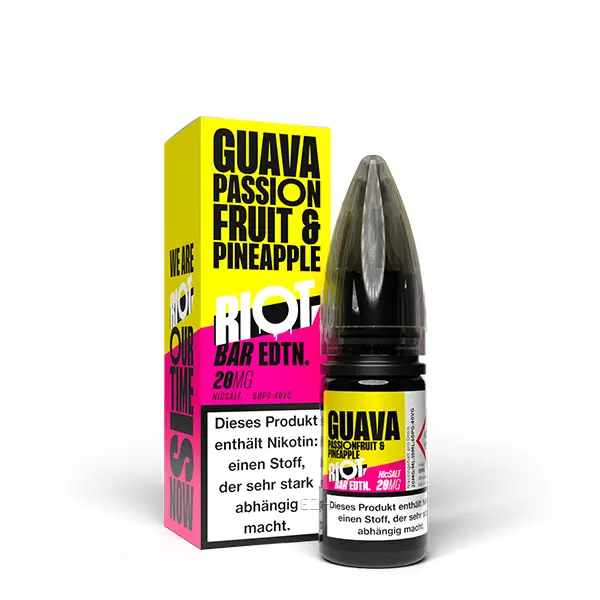 - 1x Riot Squad Bar Edition Guava, Passionfruit & Pineapple Nikotinsalz Liquid 10 ml
