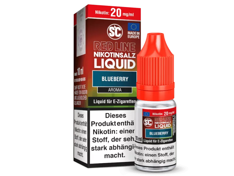 Alle Liquids der SC Red Line Serie bestehen aus überdosierten Geschmäckern, die Sie schon aus Einweg E-Zigaretten kennen. Daher entfalten die SC Red Line Nikotinsalz Liquids im niedrigen Leistungsbereich mehr Aroma als herkömmliche Liquids.Das Nikotinsalz Liquid namens Blueberry von SC ist Teil der Red Line Serie und ist für das pure Dampfen mit einer E-Zigarette geeignet. Das Liquid entwickelt beim Dampfen mit einer E-Zigarette den intensiven Geschmack von Blaubeeren und einer frischen Note. Das Liquid ist in den Stärken 0 mg/ml, 10 mg/ml und 20 mg/ml erhältlich. Ihnen wird eine 10 ml Flasche mit 10 ml Nikotinsaltz Liquid in der von Ihnen ausgewählten Stärke geliefert.