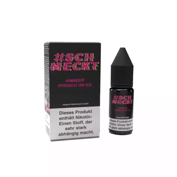 Das #Schmeckt Himbeer Pfirsich on Ice Liquid wird die Fans exotischer Fruchtmixe begeistern. Fleischige, saftige und tropisch fruchtige Pfirsiche verschmelzen mit intensiv beerigen Himbeeren und crushed Ice zu einem „Frozen Fruit Cocktail“, wie man ihn auf einer Südseeinsel genießen würde. Gelungen ist der intensive Himbeergeschmack, der hervorragend zum saftig süßen Pfirsich passt! Der deutliche Kühleffekt intensiviert die Fruchtigkeit und sorgt für einen eisigen Hauch beim Inhalieren.Nikotinsalz Liquids