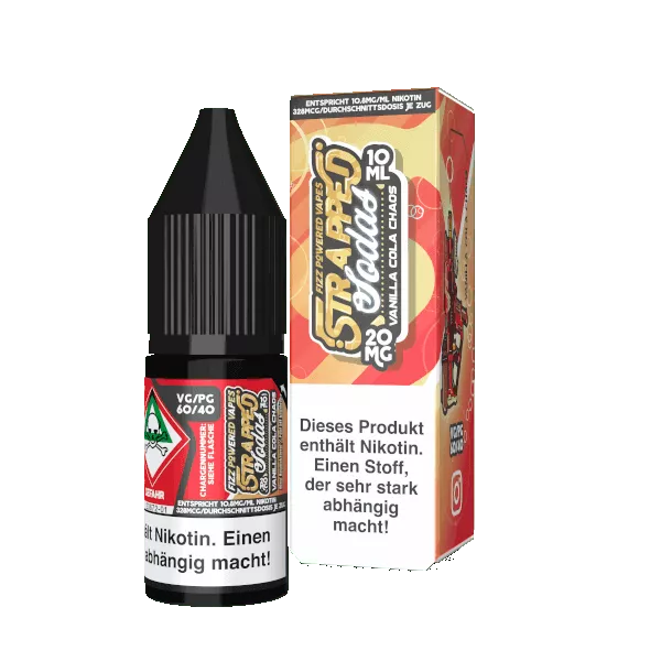 Vanilla Cola Chaos von Strapped Soda ist ein erfrischendes Liquid, das eine perfekte Kombination aus cremiger Vanille, klassischer Cola und einem Hauch Frische bietet. Die Aromen sind perfekt aufeinander abgestimmt und sorgen für ein einzigartiges Geschmackserlebnis. Mit diesem Liquid können Sie den süßen und erfrischenden Geschmack von Vanilla Cola genießen.Nikotinsalz Liquids