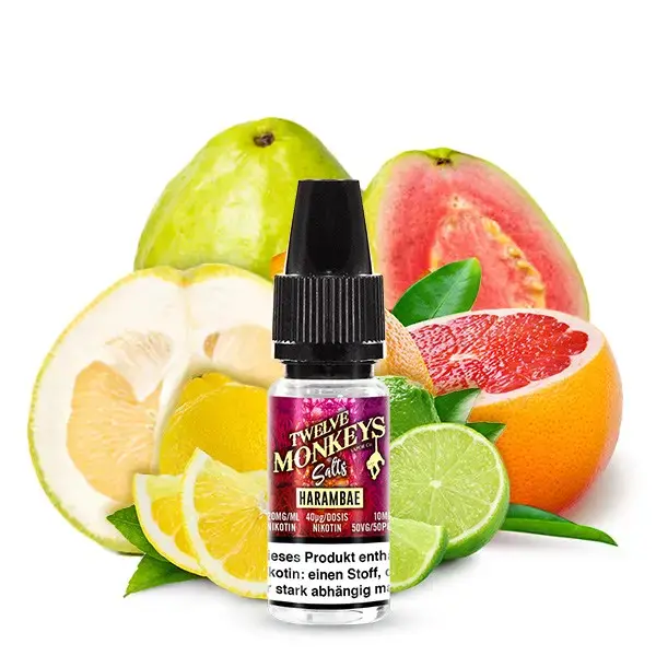 Twelve Monkeys präsentiert ihre beliebten Aromen jetzt auch als Nic Salt Version. Harambae ist eine geheimnisvolle Mischung aus verschiedenen Zitrusfrüchten wie Grapefruit, Limette, Zitrone und Blutorange, die mit dem süß-sauren Geschmack von Guave abgerundet wird. Ein Muss für alle Fans von Zitrusfrüchten!Nikotinsalz Liquids