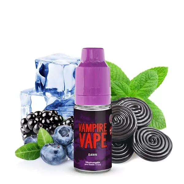 Dawn von Vampire Vape ist die perfekte Wahl für alle, die den Heisenberg-Geschmack lieben und nach einer erfrischenden Alternative suchen. Die britischen Aromaspezialisten haben mit dieser Kreation erneut ihre Fähigkeiten bei der Entwicklung einzigartiger Geschmackserlebnisse unter Beweis gestellt. Dawn kombiniert dunkle Früchte, Lakritz und Menthol-Frische zu einem unverwechselbaren Mix, der Deine Geschmacksknospen im Sturm erobern wird. Mit jedem Zug entfaltet sich der aromatische, süße und leicht säuerliche Geschmack der dunklen Beerenfrüchte, während eine süß-würzige und erfrischende Lakritz-Note für Tiefe und Abwechslung sorgt. Das grüne Menthol rundet das Aroma ab und hinterlässt ein angenehm kühles Frischegefühl in Mund und Rachen. Entdecke mit Dawn von Vampire Vape ein völlig neues Geschmackserlebnis, das Dich immer wieder begeistern wird.10ml Fertig-Liquids