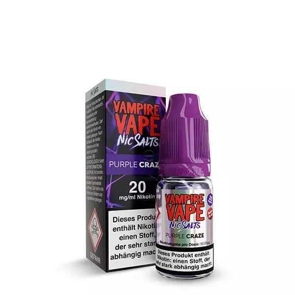 Purple Craze wird von Vampire Vape, einem renommierten Hersteller aus Großbritannien, produziert. Die hochwertigen Inhaltsstoffe und die sorgfältige Herstellung garantieren ein erstklassiges Produkt. Vertraue auf die Erfahrung und Qualität von Vampire Vape und gönn dir dieses besondere Liquid.Nikotinsalz Liquids