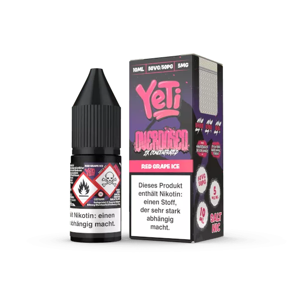 Erlebe die volle Kraft von saftigen roten Trauben mit jeder Inhalation. Das Yeti Overdosed - Red Grape Ice Liquid bringt dir den intensiven Geschmack von reifen Trauben, kombiniert mit einer angenehmen Kühle.Nikotinsalz Liquids