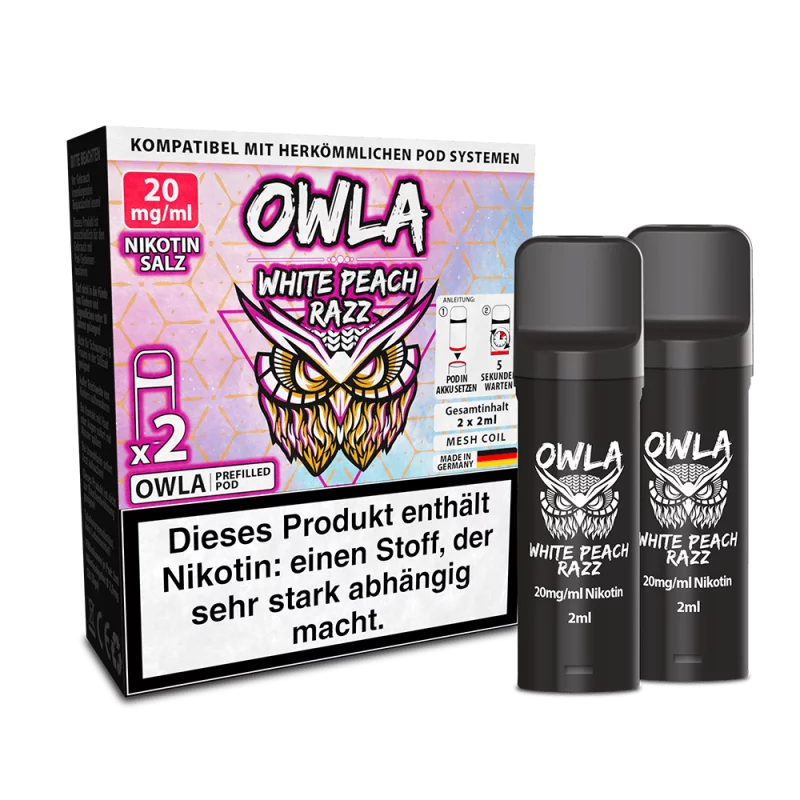 Die Owla White Peach Razz Pods verbinden den süßen Geschmack von Pfirsich mit der frischen Note von Himbeeren. So bekommst Du ein leichtes und fruchtiges Aroma, das perfekt für den Sommer ist. Jeder Zug bringt Dir den vollen Geschmack direkt auf Deine E-Zigarette.Einfache Handhabung und Nutzung