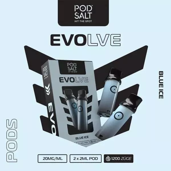 Die Podsalt Evolve Prefilled Pods sind sowohl für den Evolve Stick als auch für die Evolve Box passend. Pro Packung sind 2 Pods mit jeweils 2ml Flüssigkeit mit 20mg/ml Nikotinsalz-Liquid enthalten und die Pods können ganz simpel auf das Basisgerät gesteckt werden und sind sofort einsatzbereit.Blue Ice