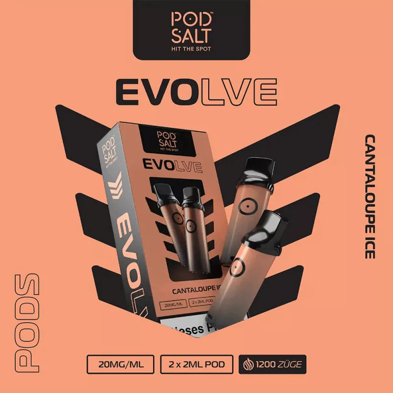 Die Podsalt Evolve Prefilled Pods sind sowohl für den Evolve Stick als auch für die Evolve Box passend. Pro Packung sind 2 Pods mit jeweils 2ml Flüssigkeit mit 20mg/ml Nikotinsalz-Liquid enthalten und die Pods können ganz simpel auf das Basisgerät gesteckt werden und sind sofort einsatzbereit.Cantaloupe Ice