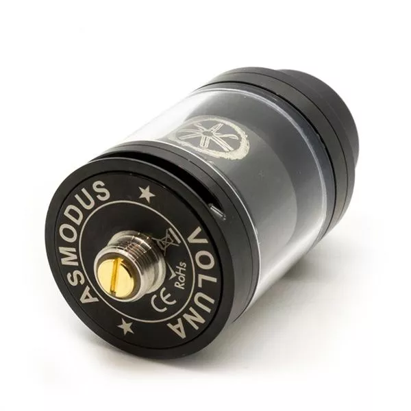 Der Asmodus Voluna RTA hat ein Durchmesser von 25 mm, ein Füllvolumen von 2.5ml und gehört zu den Geschmackstärksten RTA's auf dem Markt. Die besondere Luftführung im Zyklopen-Still sorgt dafür, dass die Luft verwirbelt wird und unterhalb der Wicklung wieder austritt, wodurch der Asmodus Voluna Tank zu einem Dampf- und Geschmackswunder wird. Der Asmodus Voluna RTA Selbstwickler Tank wird einfach und schnell via Top Filling befüllt.Technische Daten
