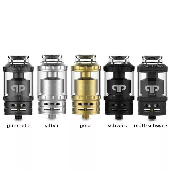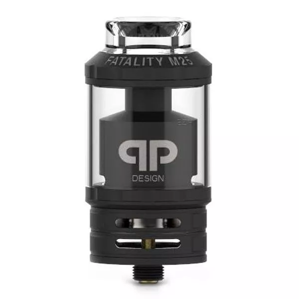 Beim Fatality M25 von QP Design handelt es sich um einen sehr wertig gefertigten Selbstwickeltankverdampfer, der einige neue Ideen für die Nutzer bereithält. Mit einem Durchmesser von 25 mm und einer Höhe von insgesamt 52 mm ist er recht kompakt und passt so zu einer Vielzahl aktueller Akkuträger. Die verwendeten Materialien und die Fertigungsqualität beim Fatality ist absolut klasse. Die Befüllung des bis zu 5.5 ml fassenden Tanks geht ganz komfortabel von oben und das großzügige im postless Design gehaltene Deck kann problemlos Single- oder Dualcoils auch aus dickeren Drähten oder Spezialwicklungen aufnehmen.Besonderheit ist die doppelte Aiflowcontrol die sich sehr individuell einstellen lässt. Mit der einen stellt man die Luftzufuhr von unten ein, mit der anderen die von der Seite. So hat man eine sehr große Auswahl an Einstellmöglichkeiten, die seines gleichen sucht. In Verbindung mit dem großen 810 er Driptips und den großen Lufteinlässen wird schnell klar, dass sich der Fatality M25 an geschmacksorientierte Dampfer richtet, welche einen offenen direkten Zug bevorzugen.