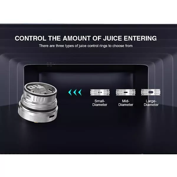 - Liquidfluss-Regulierung durch drei austauschbare Liquid-Control Ringe am Deck