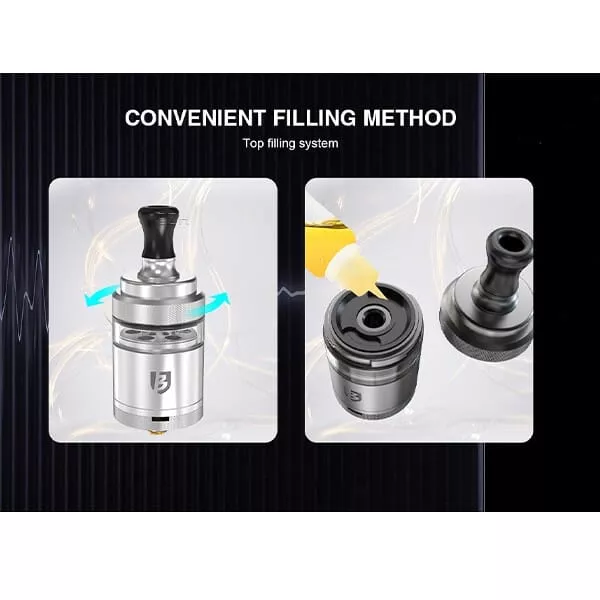 Der B3 Mini besitzt ein Tankvolumen von 2,0 ml, welches durch den mitgelieferten Glastank oder Stahltank und die Kaminverlängerung auf 4,0 ml erweitert werden kann. Die griffig gerändelte Top-Cap besitzt einen Bajonett-Verschluss und darunter verbirgt sich das separat abgedichtete Top-Fill. Im Lieferumfang des B3 Mini sind vier 510er MTL Drip Tips in neuen Designs mit unterschiedlichen Längen und Formen enthalten. Die clevere Anordnung der Dichtungsringe sorgt für optimalen Schutz vor Auslaufen und zur Reinigung lässt sich der B3 Mini einfach zerlegen und wieder zusammensetzen.Leistungsstarkes Wickeldeck und einzigartiges Dampferlebnis